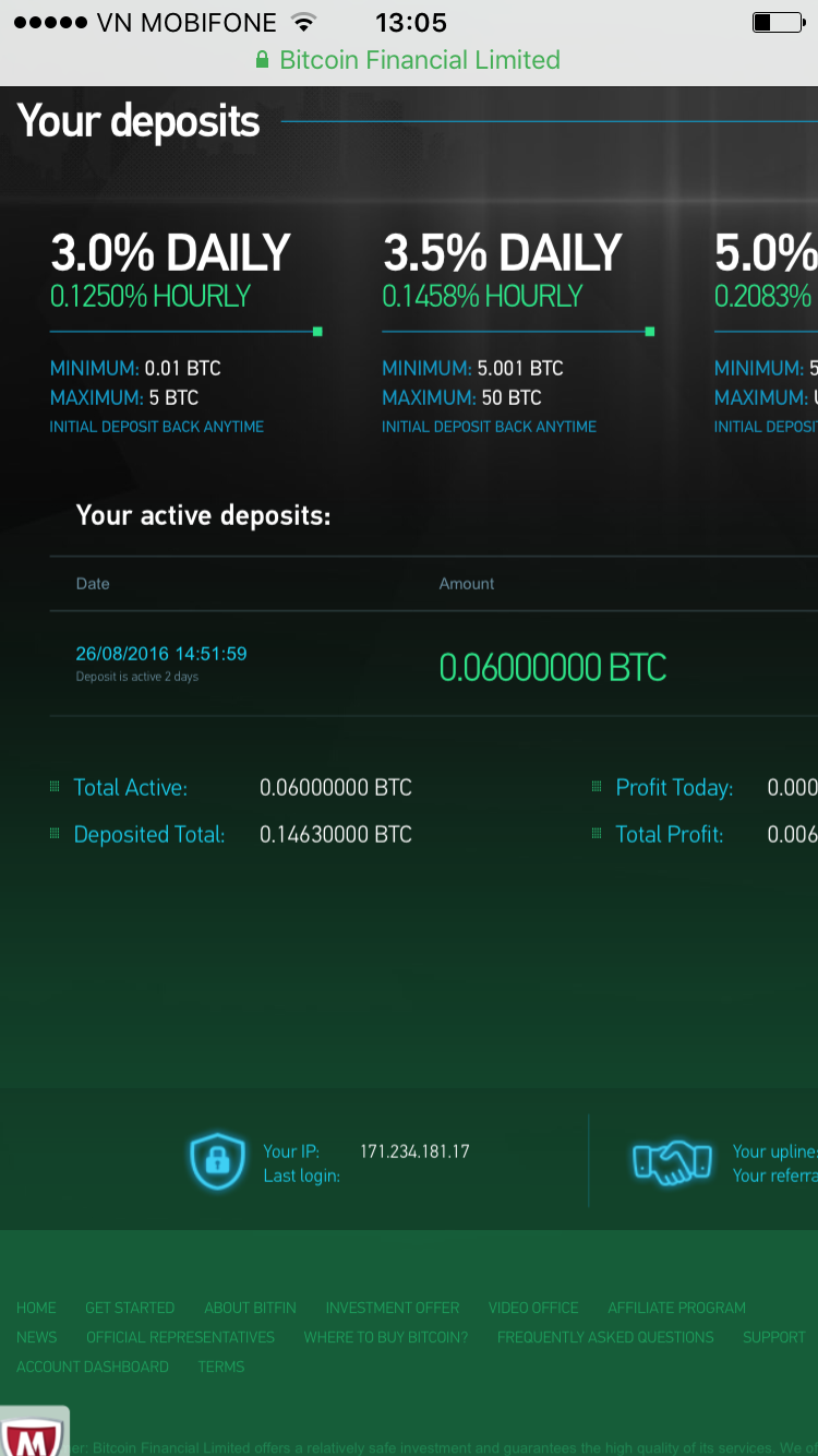HYIP Bitfin.biz >> Site đầu tư BTC Lãi suất 3-5% hằng ngày.