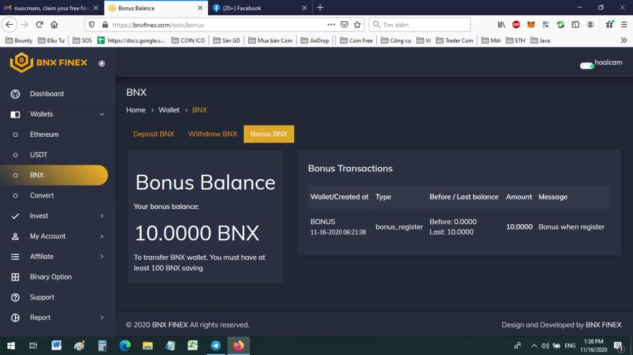 Sàn giao thức defi - đăng ký xác nhận Gmail xong nhận 10 BNX~ 11 đô la