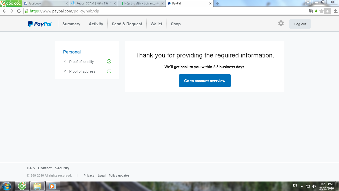 Suggest Bổng dưng Paypal bắt xác minh danh tính