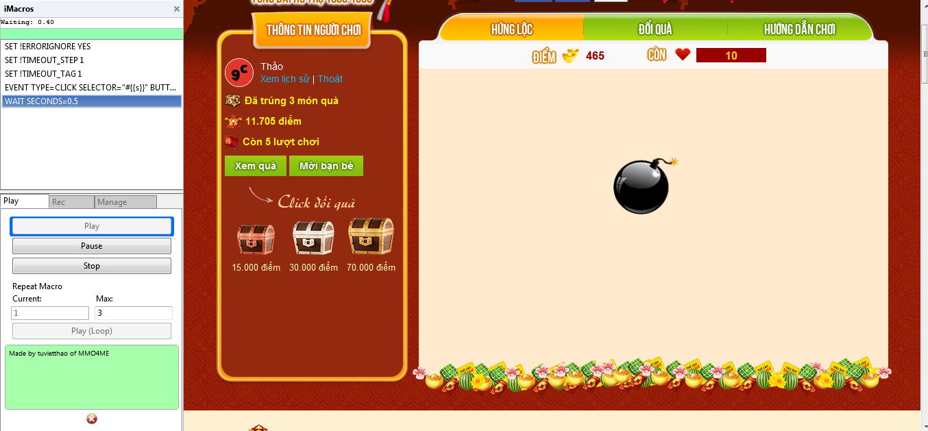 Sau mấy hôm nghiên cứu cuối cùng mình cũng đã làm thành công bot cho game hứng quà của Thế giới di động