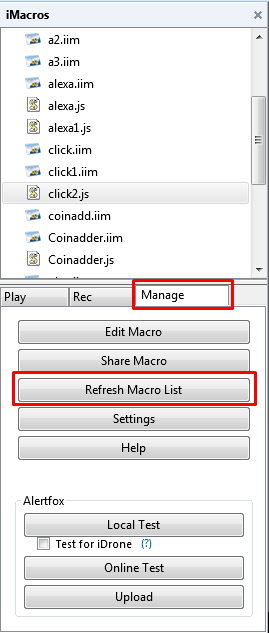 2. Vô manage của iMacros và bấm Refresh Macro List hoặc Restart browser