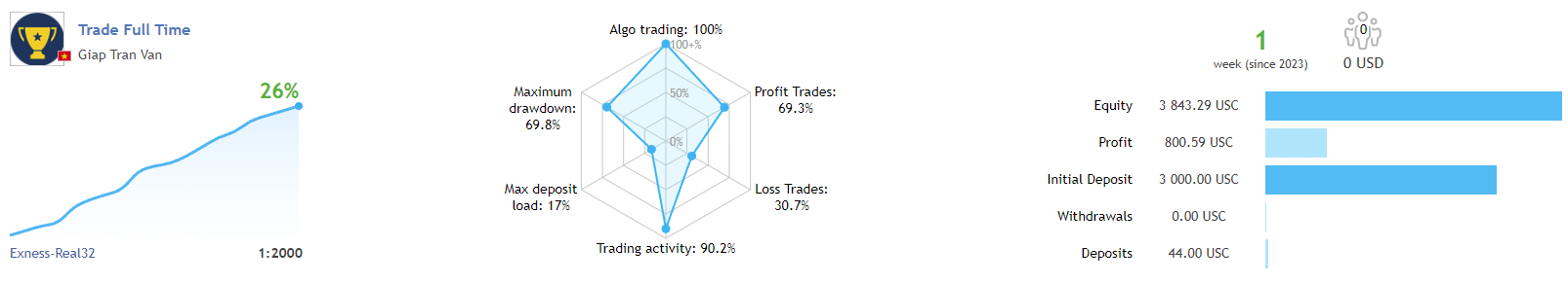Ak đúng r, tk này chạy rủi ro xem bot nó xử lý ntn thôi, còn hệ thống của mình thì cho chạy an toàn hơn nên DD khá thấp và profit tầm 3-5%/tuần thôi