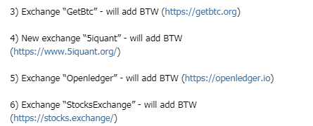 Thông báo mới -> BTW sẽ được list lên 4 sàn nữa: