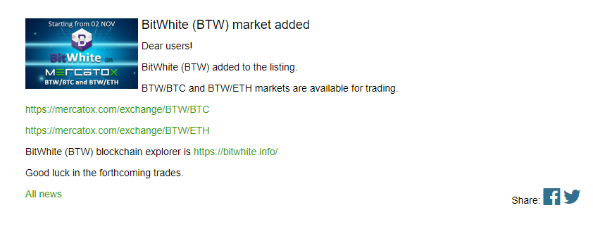 Sau một thời gian dài vote list ở sàn Mercatox, hiện tại bên sàn đang xem xét tiếp để có được list hay không ? Thông tin này mình vừa hỏi của admin community BTW VN do mình thấy không còn nằm trong mục list nữa.