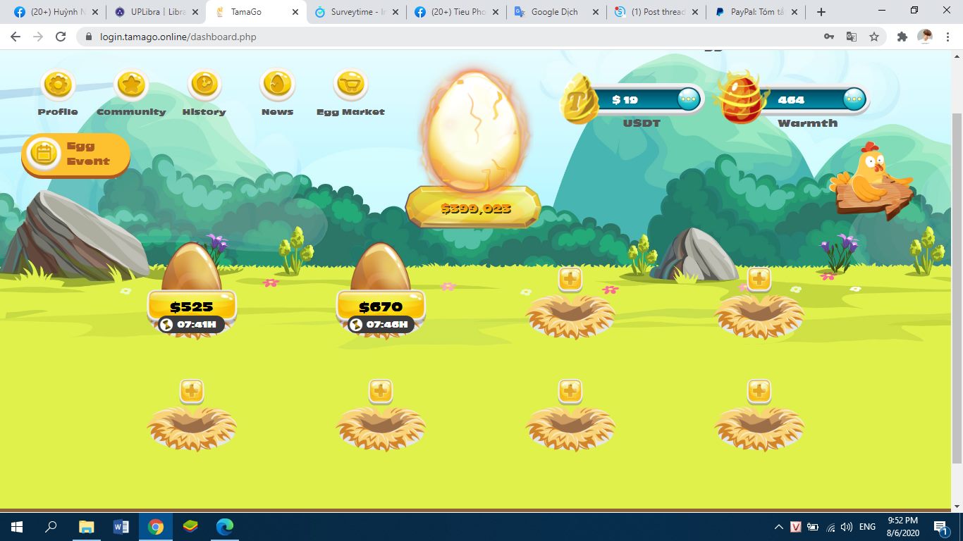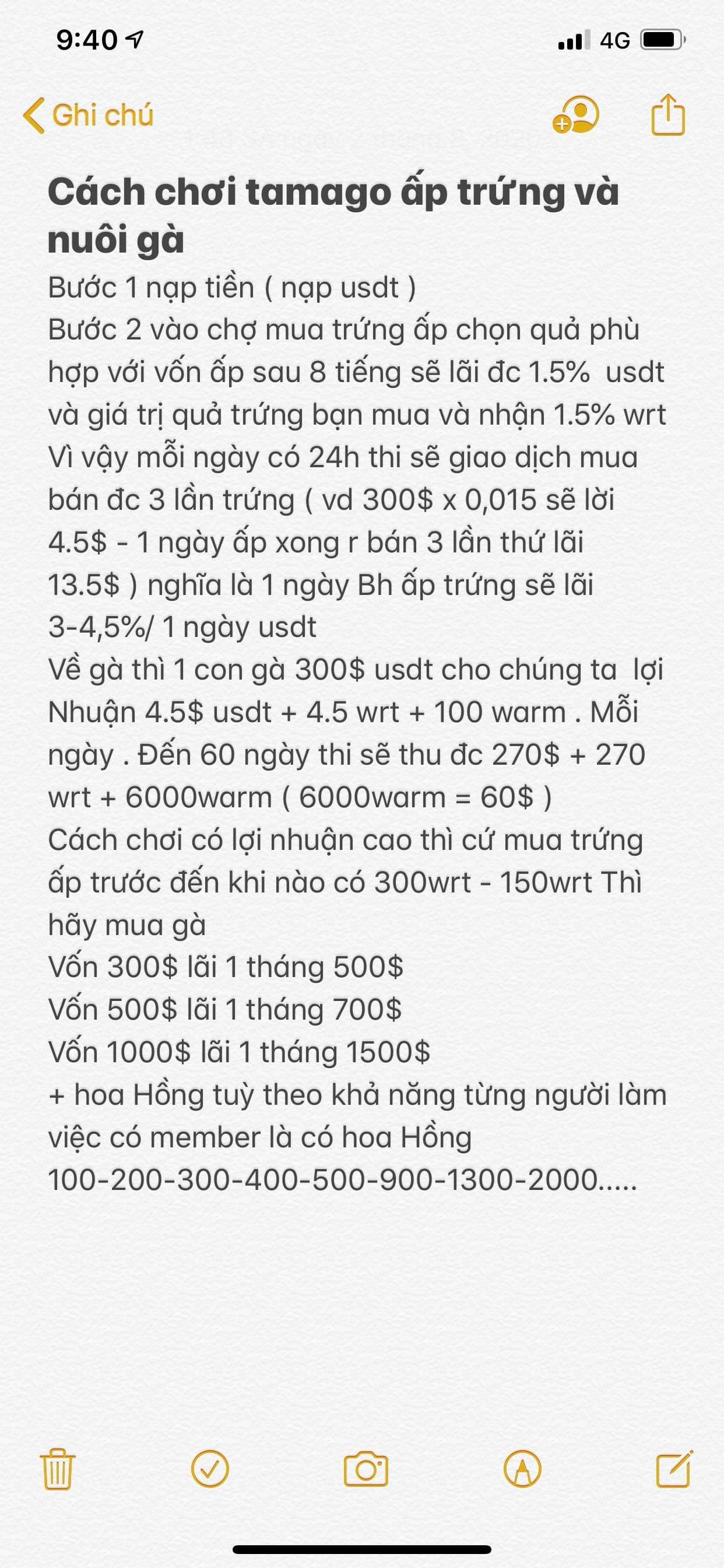 -Khi có dc gà : thì bạn sẽ nhận dc 4,5$ +4,5 wrt +100warm mỗi ngày và 1,5% tiền bán trứng : bạn giao dịch mỗi ngày..