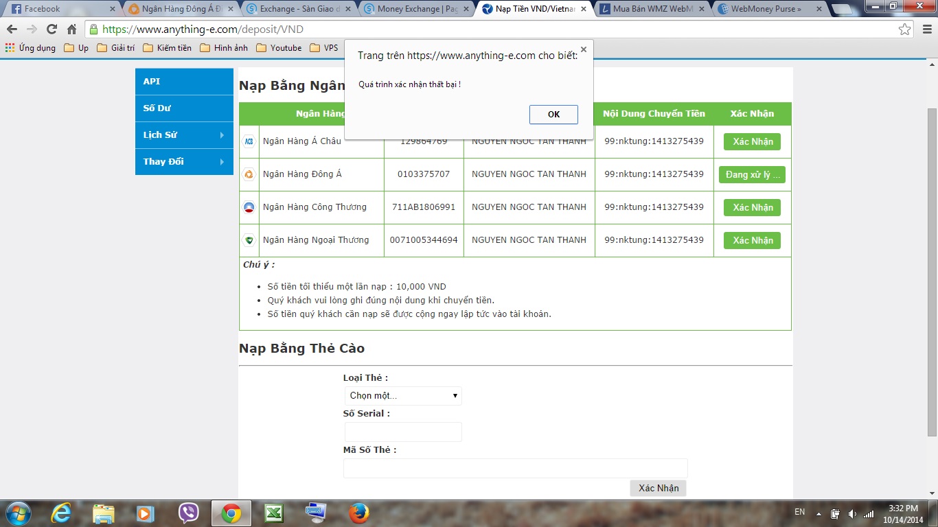 Tình hình là đã cho phép nạp VND vào tài khoản bằng thẻ cào. Mức phí cụ thể như sau :