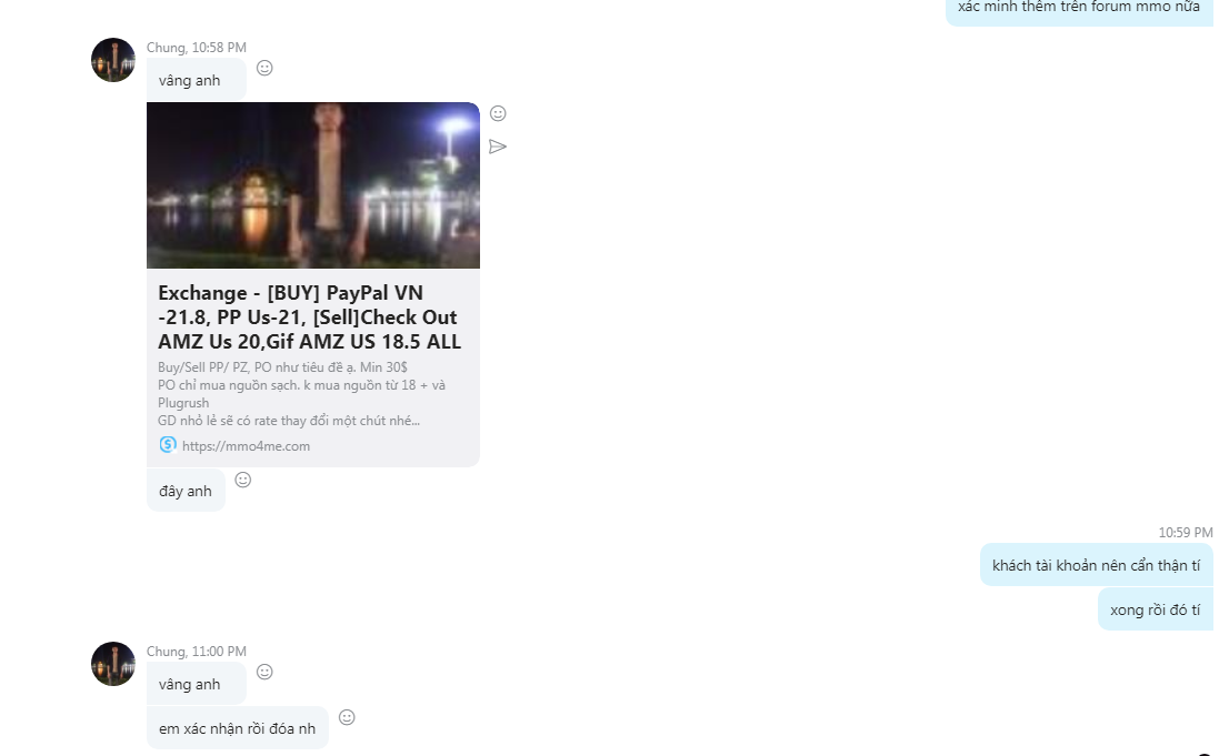 Chungti196 Junior Joined May 24, 2015 Messages 102 Reactions 169 MR 0.276 0.276 $500.00 Services Exchange - - Apr 15, 2019 #4,132 Hollowman said: đang chat skypeView attachment 128027 Click to expand... xác nhận gd
