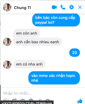 Giao dịch 20$ paypal với bác ----- xin xác nhận giúp nhé..
