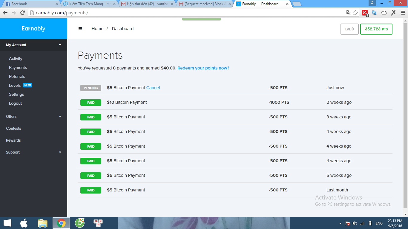 có em đùng link ref của bác đó mà sao dc có 25 cũng lạ , mà hình như link bác đưa đâu có link ref , nếu có sẵn 100 thì làm đủ minpay 1 nốt nhạc , sợ làm gần 2$ mà die sock coi như bỏ acc à bác