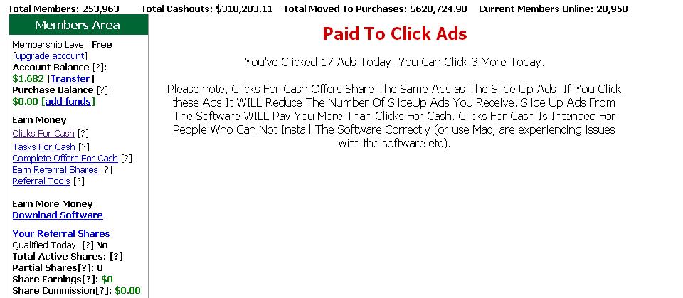 Mà nói luôn lãi share chỉ đc chia khi bạn click đủ 10 ads từ soft. Chứ click ads ở phần click for cash cũng vô dụng.