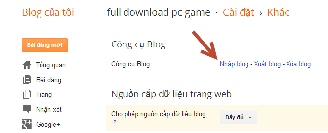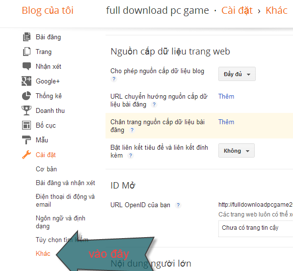 sau đó vào trình điều khiển của blog \ vào phần " Khác "