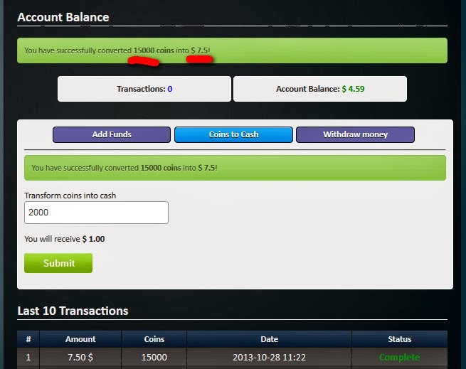 - Mỗi ngày click kiếm coins (tùy thuộc vào có bao nhiêu trang để click) thì cũng kiếm được khoảng 1000 coins(10 clicks) đến 10.000(100 clicks) coins (5$)
