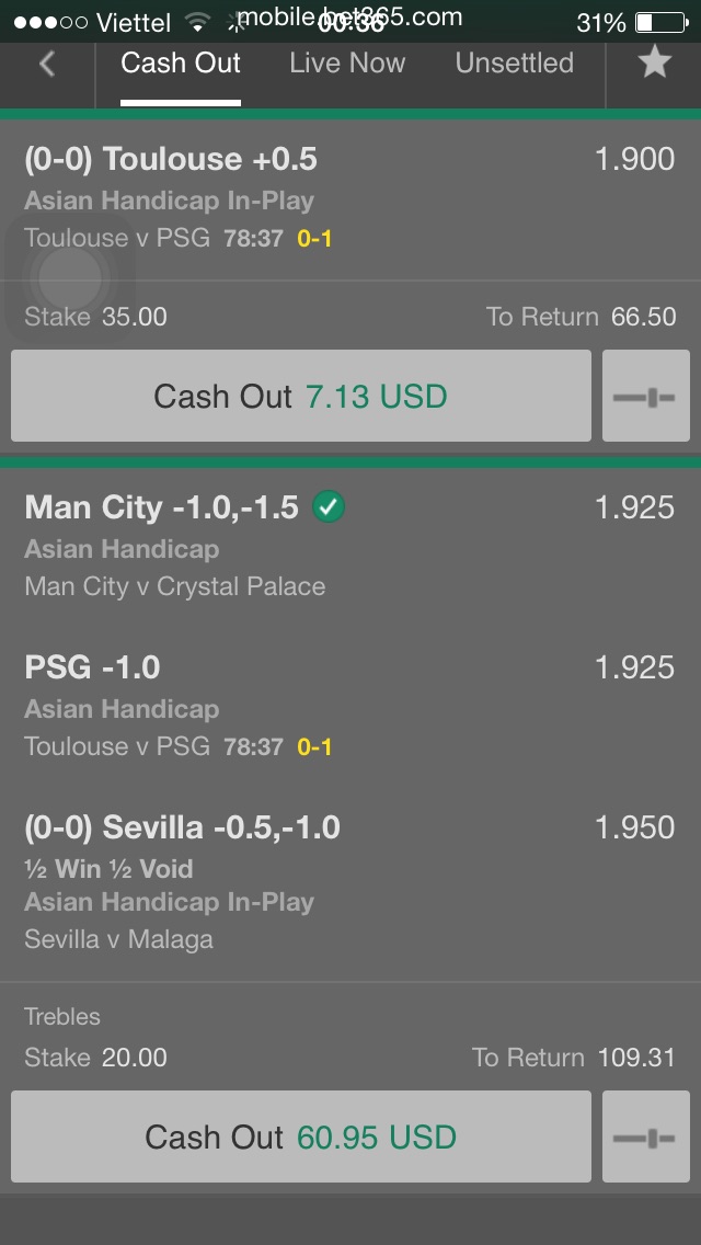 trên forum có ai hay chơi bet365 kèo 1.1x ko nhỉ ? Chơi thử mấy năm thấy cũng khá bấp bênh. nay định nạp 1000$ chơi kiểu bỏ 1 ăn 1.0x ( x từ 3-7) mình thấy kèo này rất dễ ăn. Bỏ 1000 đc 30-70$ ( theo như ở trên ) vậy cho e hỏi đã có ai chơi kiểu ăn 1.0x chưa ? Ai cùng chí hướng thì ra tết ae cbi chiến :D