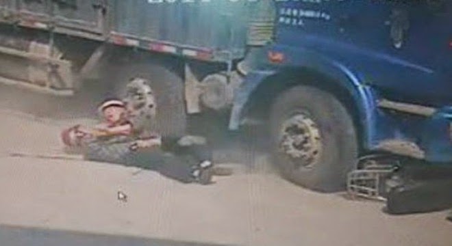 Trong tích tắc, người cha dũng cảm đã đẩy con mình ra khỏi bánh xe đang lăn tới mặc dù chân ông lúc này đã bị xe tải cán lên. Vài giây sau, chiếc xe tải đã cán ngang người ông, khiến ông tử vong tại chỗ. Nhưng bù lại, ông đã cứu được con trai mình.