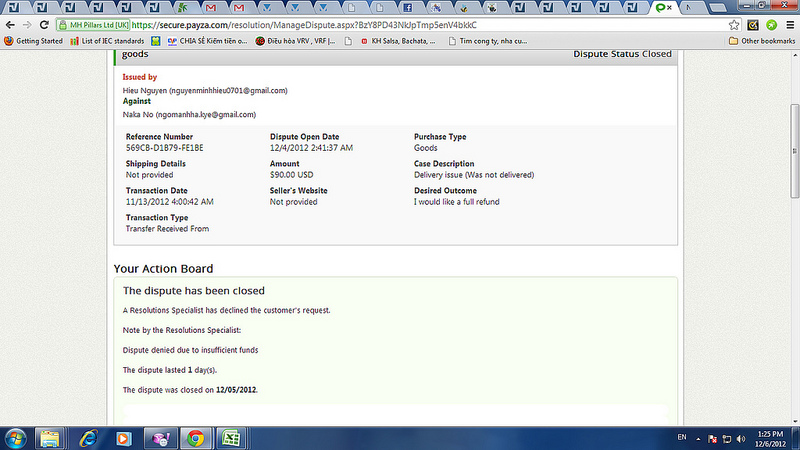 Tình hình là em đã mua Payza của một tay. Bây giờ em nhận được email thông báo của PZ rằng hắn muốn dispute em. Trong khi em đã trả tiền đầy đủ nó rồi