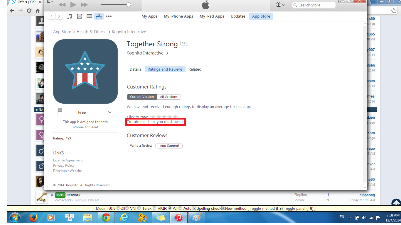 Như tiêu đề, em đã down app về nhưng không rate được. Nó hiện lên dòng này "To rate this item, you mus own it itunes" .