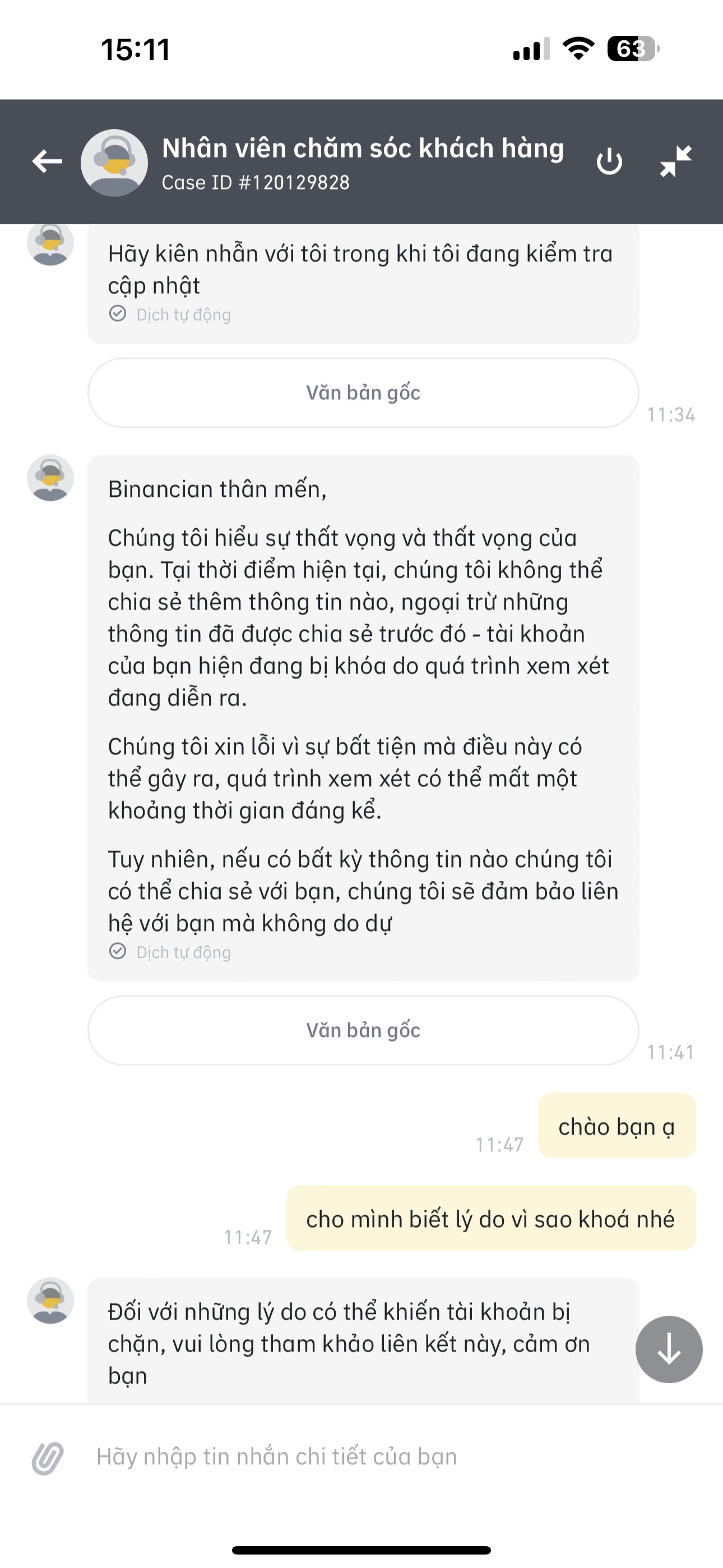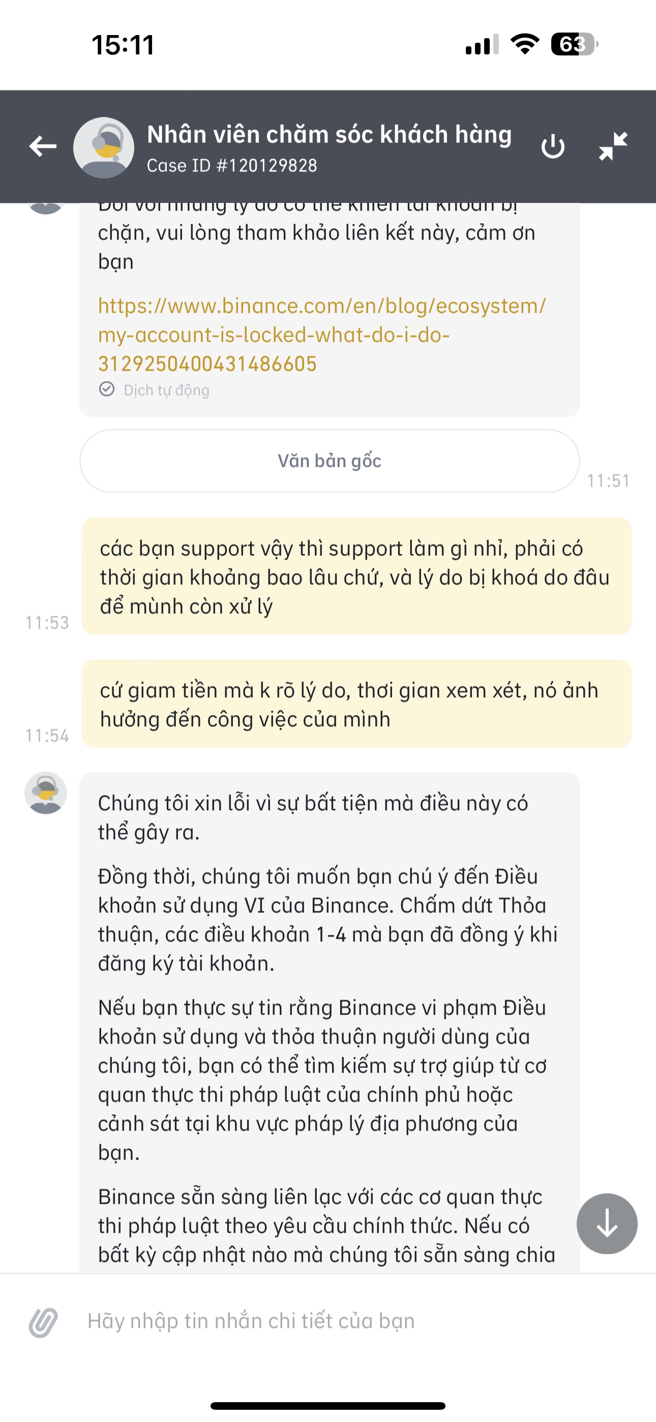 Mình bị đóng băng một khoản tiền usdt (không phải cả ví), mình không rõ đóng băng từ bao giờ và lý do đóng băng là gì, có liên hệ support qua app mà nhận được các câu trả lời chung chung như ảnh, xin các bác có kinh nghiệm hướng dẫn cách mở khóa hoặc liên hệ support khác với ạ !! Mình xin cảm ơn !!