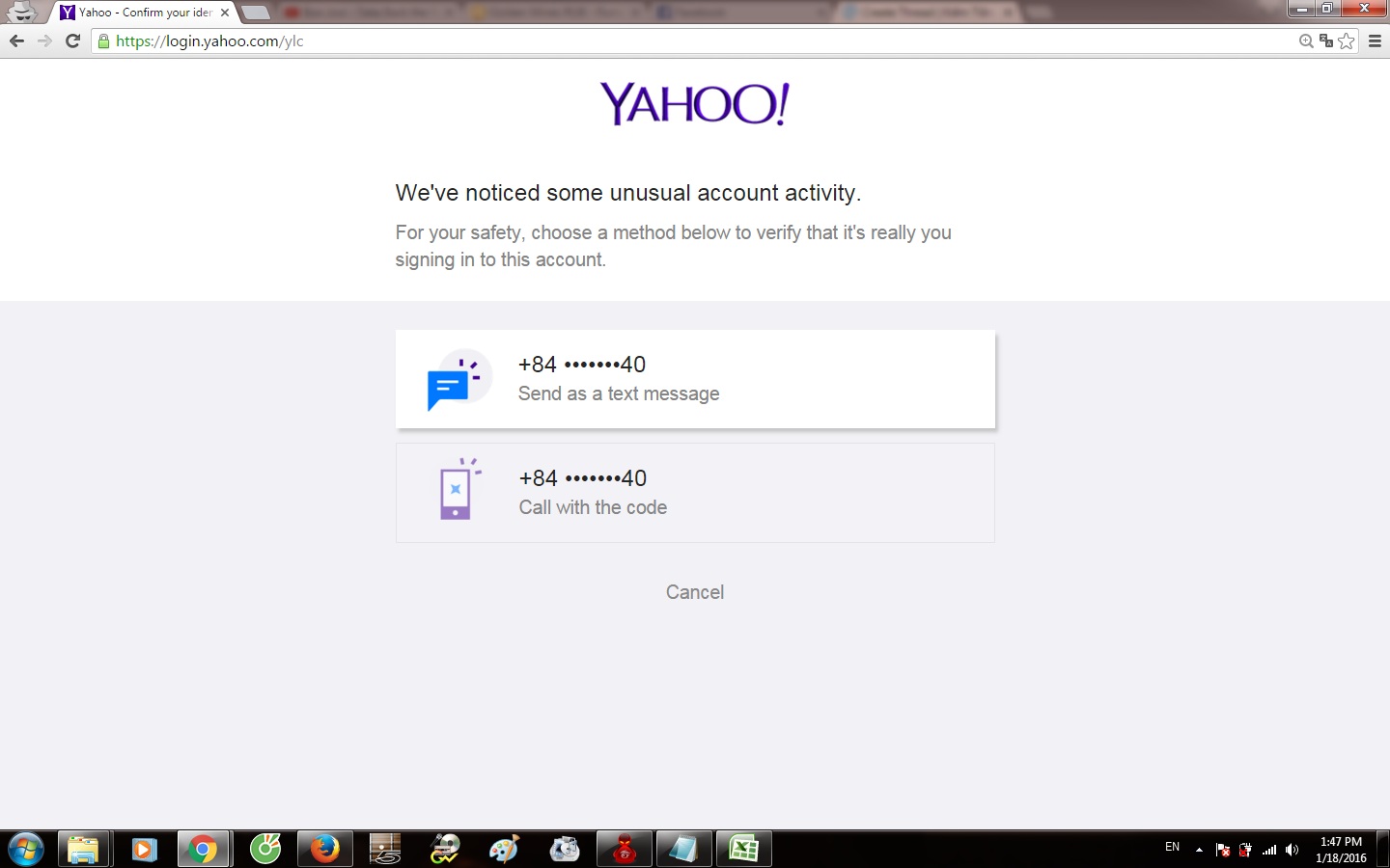 Yêu cầu nick yahoo là login vào mail nó không hiện cái vụ xác thực số điện thoại như trong hình. Login vào là vào thẳng mail luôn! Chủ yếu là game nó gửi code về đó, vào lấy cái code xong cũng chả cần dùng j tới cái mail đó cả.