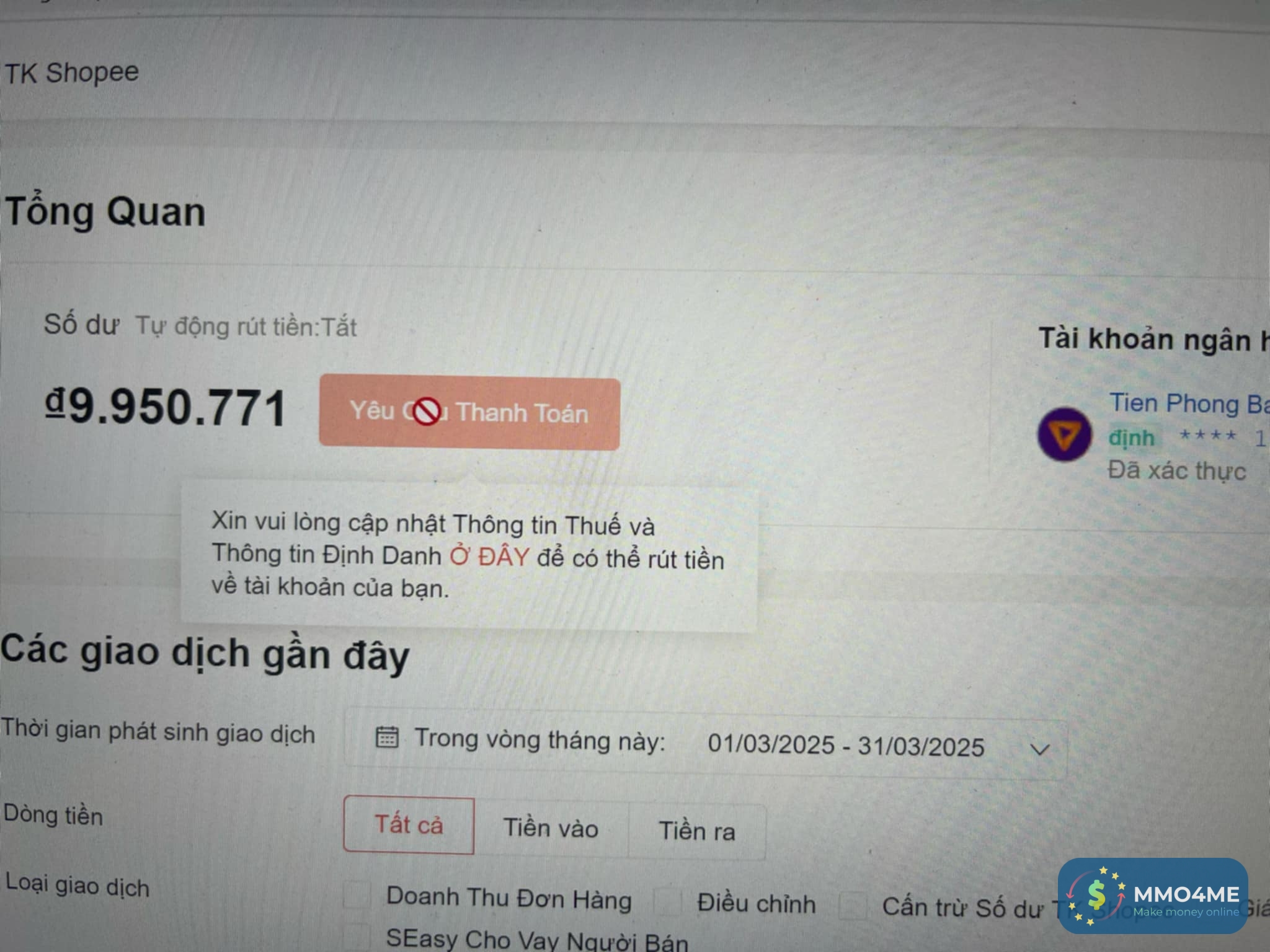 Em có shop này còn tiền trong tài khoản mà hiện bị vướng định danh mới được rút tiền. Oái oăm là em đã hết lượt định danh, éo le thêm là Shopee chỉ định danh trên ứng dụng được mà acc này của em chỉ có vượt xác minh bằng cookie, do email và sđt đã bị mất.