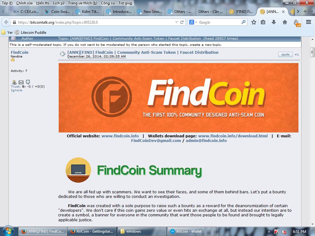 P/s Vụ này chủ thớt lời có lời khi thu 1000 findcoin/0,2$. Coin mới lên sàn hôm qua thôi:D, bán nhanh khi còn đc giá:oops:.