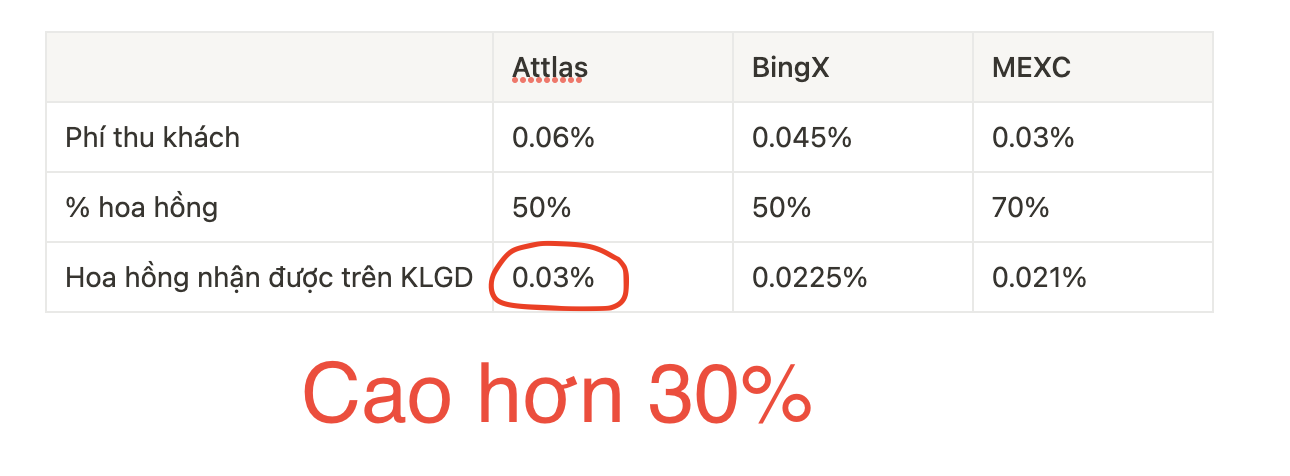 - Để giúp đối tác vợt khách, Attlas chạy chương trình “Miễn phí giao dịch Futures 3 tháng cho ref mới”. Khách được free phí nhưng mình vẫn được hoa hồng bình thường. Do vậy mình có thể tự tin đi bảo khách là Attlas là sàn futures có phí rẻ nhất thị trường