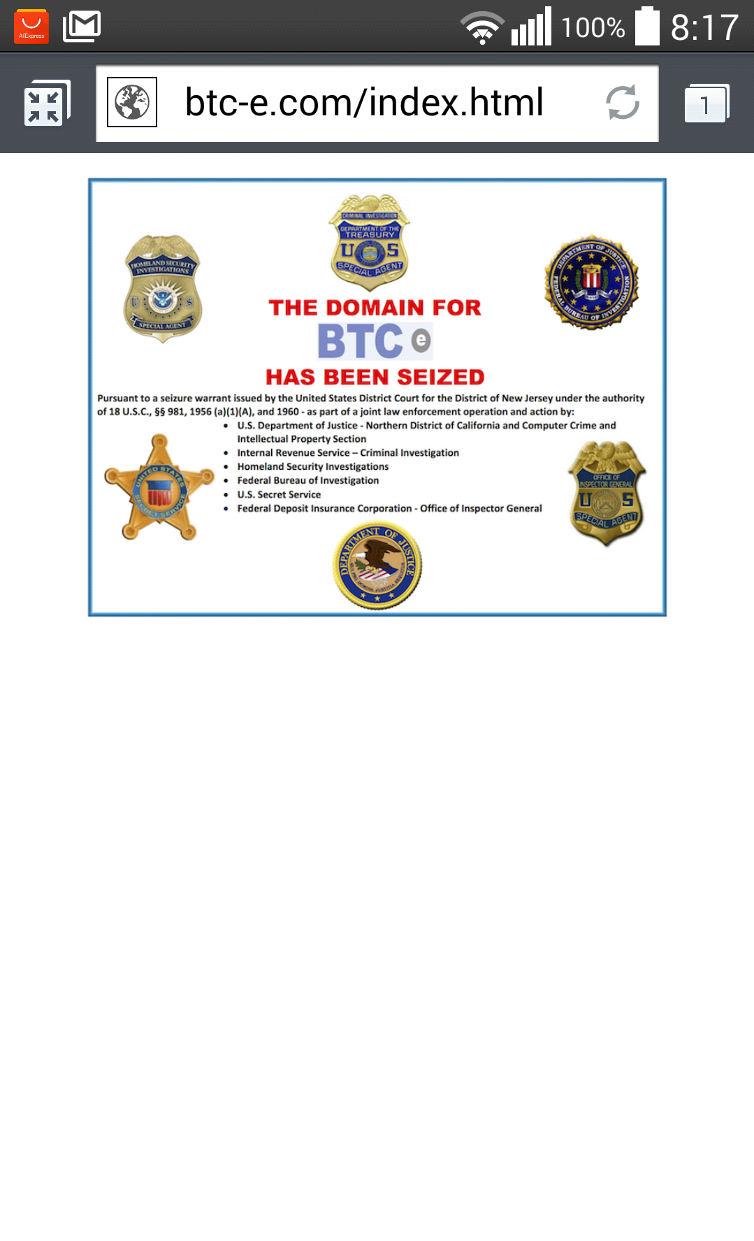 Cập nhật 7:46 29/7/2017. Không thể truy cập vào site. 1 số bạn đã thấy logo FBI treo trên btc-e.com
