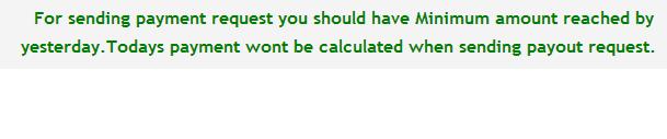 Tức là hôm nay bạn gởi request thì nó chỉ tính số tiền hôm qua trở về sau. Số tiền làm hôm nay sẽ không được cộng vào. Hôm nay bạn làm đủ minpay , thì ngày mai bạn request