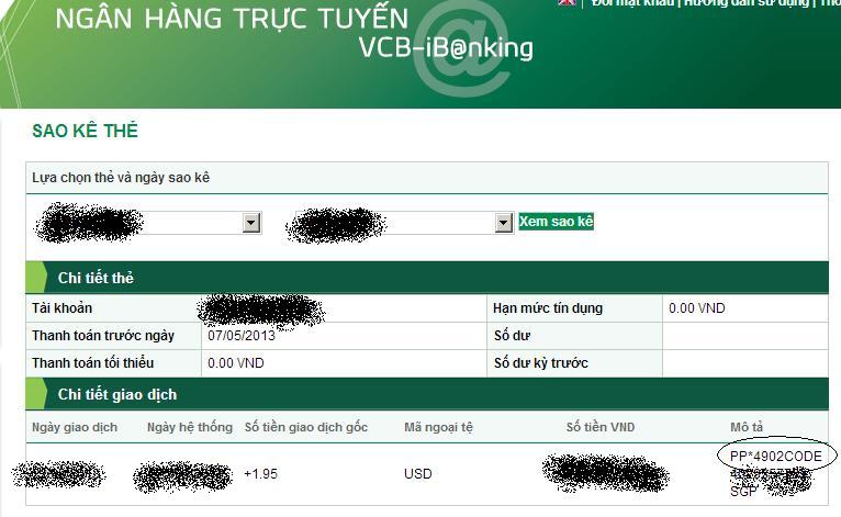 Verify ok . bạn xem proof đi. Khi verify nó sẽ gởi code 4 số và trừ 1.95$ vào tài khỏan visa. Số tiền này nó cộng vào tài khỏan paypal.