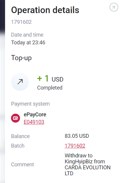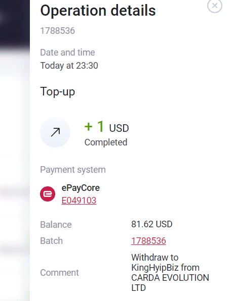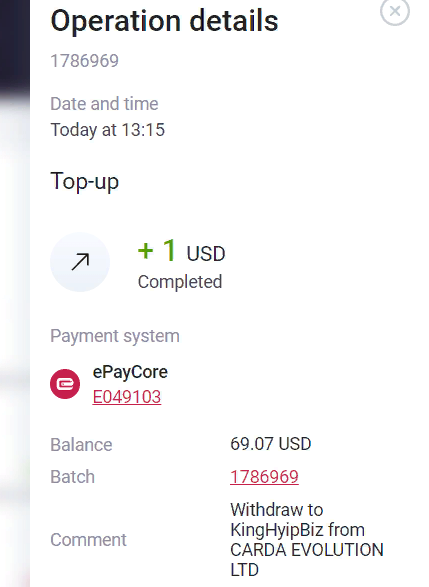 Note: Withdraw to heatstreak from CARDA EVOLUTION LTD