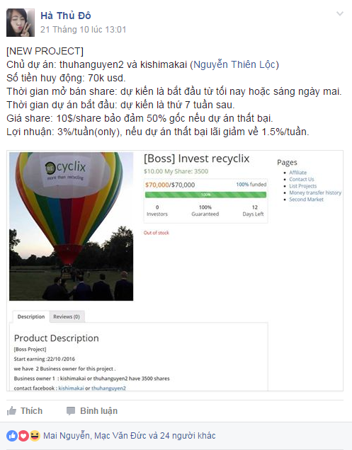 Số tiền này được trích từ tài khoản của hai chủ BOs