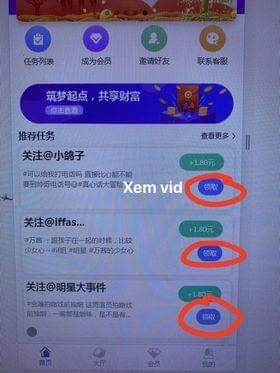 + Xem mỗi 1 video được cộng 1,8 tệ