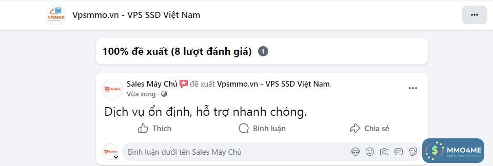 Bước 2: Đánh giá chia sẻ cảm nhận về dịch vụ VPS tại VPSMMO.VN chân thật nhất