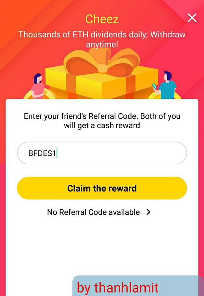 Điền mã giới thiệu để cả 2 cùng nhận phần thưởng