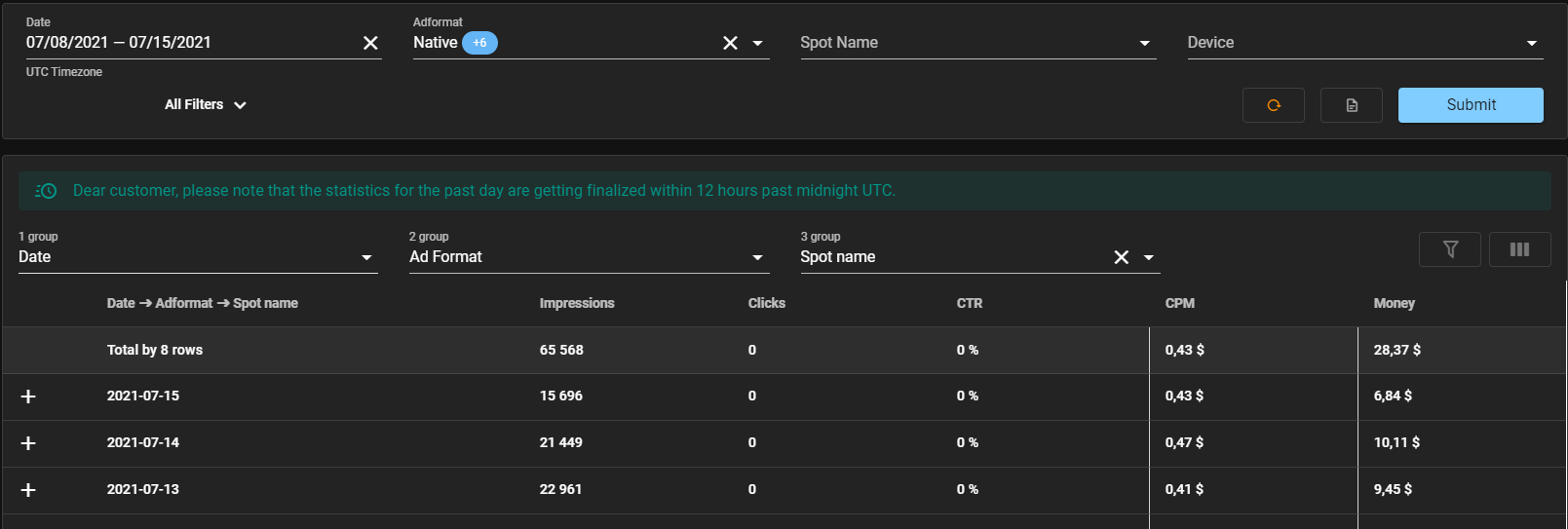 Trang của mình cách đây 1 ngày có khoảng 12k traffic, khi đặt quảng cáo Clickadu thì được khoảng 2-4$, đa số phần CPM toàn dưới 0.2-03$. Chuyển sang đặt quảng cáo cho Clickaine khoảng 10 $ -12 $ một ngày, clickadilla popupunder không gây khó chịu như các mạng quảng cáo khác. mình đặt chỉ "nhấp vào liên kết (Mặc định)". mình