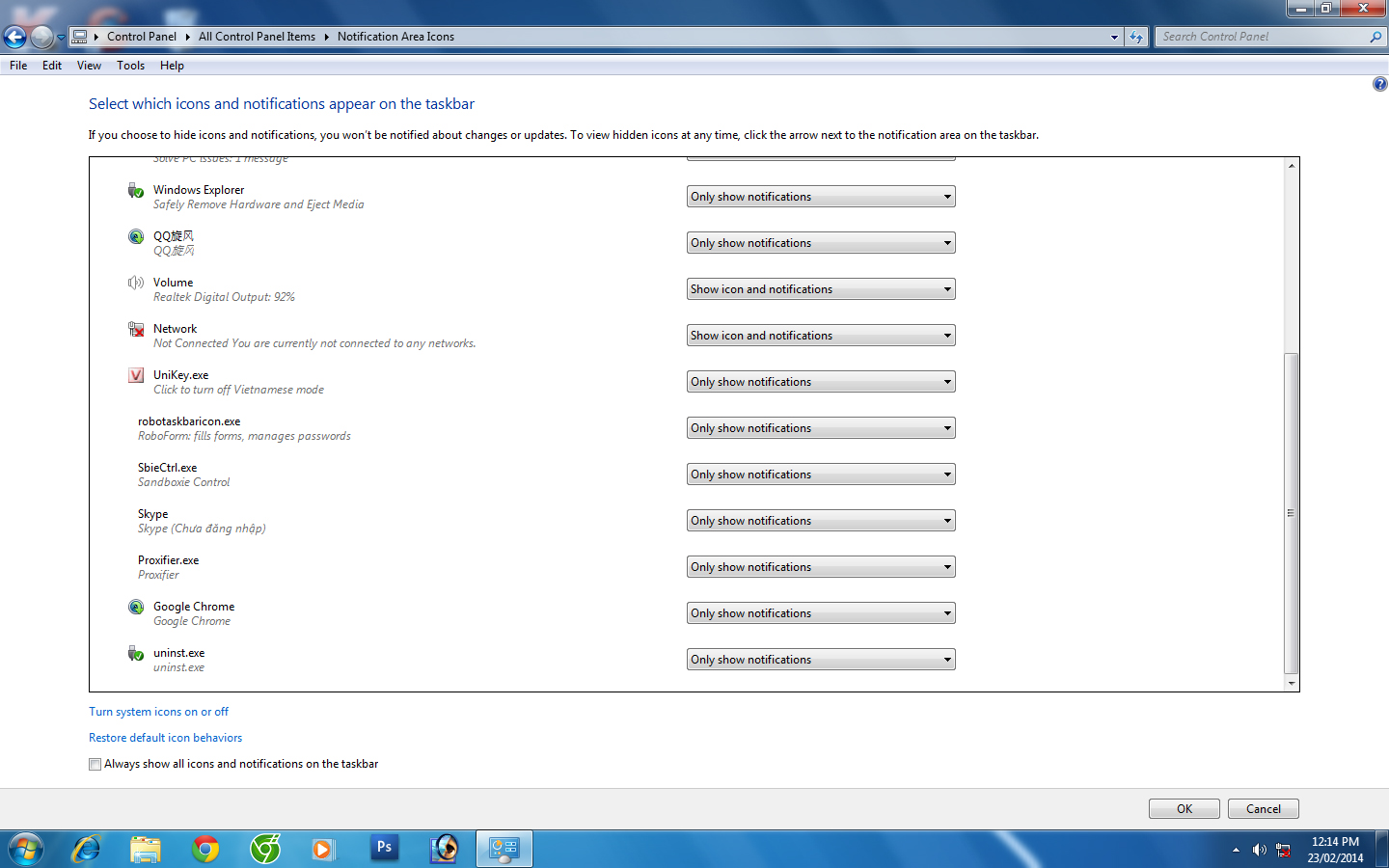 bạn chuột pải vào thanh ở dưới rồi chọn start task manager rồi vào mục processes thấy cái nào là proxife thì chọn rồi end process đi xem sao