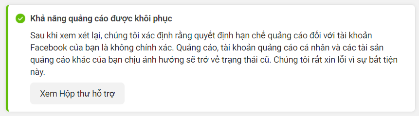 Các link kháng tài khoản quảng cáo bị hạn chế tương tự: