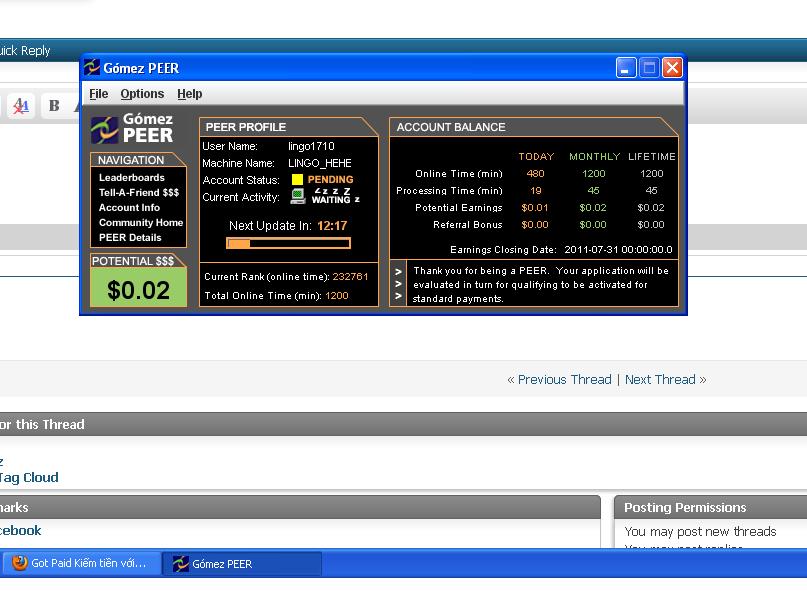 5 VPS cày 24/24 mà có gần 10$ á. bèo quá bạn ơi.Dạo này $ lên chậm nhỉ, treo 5 vps mà gần tháng dc có 10$ :binhsua04: