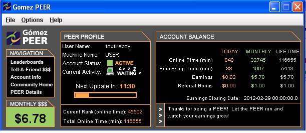 Hình như cái gomez này làm ref cho acc đã active thì mau chóng được active thì phải. Hôm trước ở máy nhà tớ tự reg 1 acc mà ko làm ref cho ai, treo máy suốt 2 tháng (từ current rank 200k xuống 50k) thì mới được active. Vài hôm sau tớ vào máy cơ quan reg 1 acc khác làm ref cho acc ở máy nhà thì chỉ 2 ngày sau đã active ( current rank còn đang >200k).
