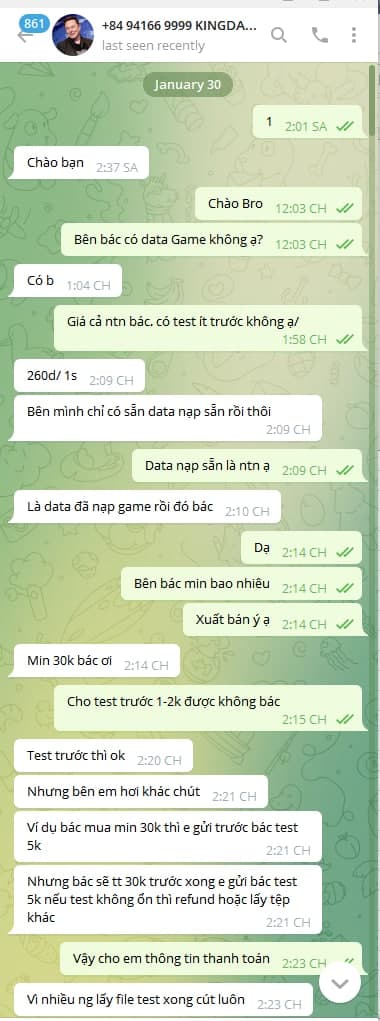 Telegram: @kingdatasms - Nhắn là có!