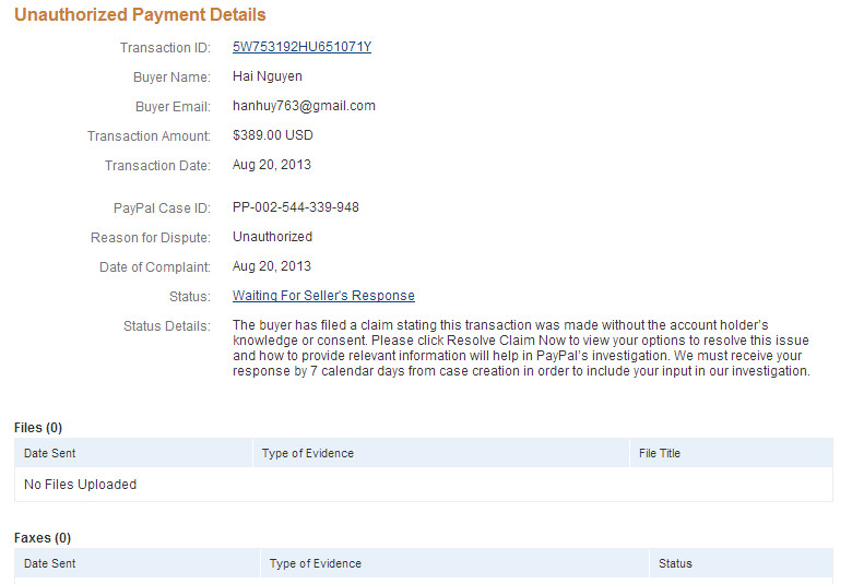 Nhưng.... Bi kịch giờ mới bắt đầu 35 phút sau nhận tin dữ 389 $ bị hold và mình chính thức bị dispute dưới dạng unauthorized