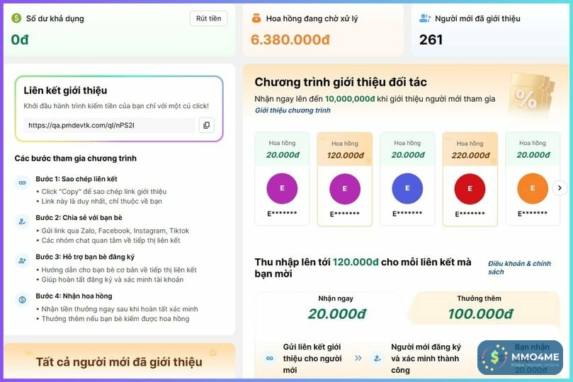 Nhận thêm 100K nếu người bạn mời phát sinh 100K hoa hồng