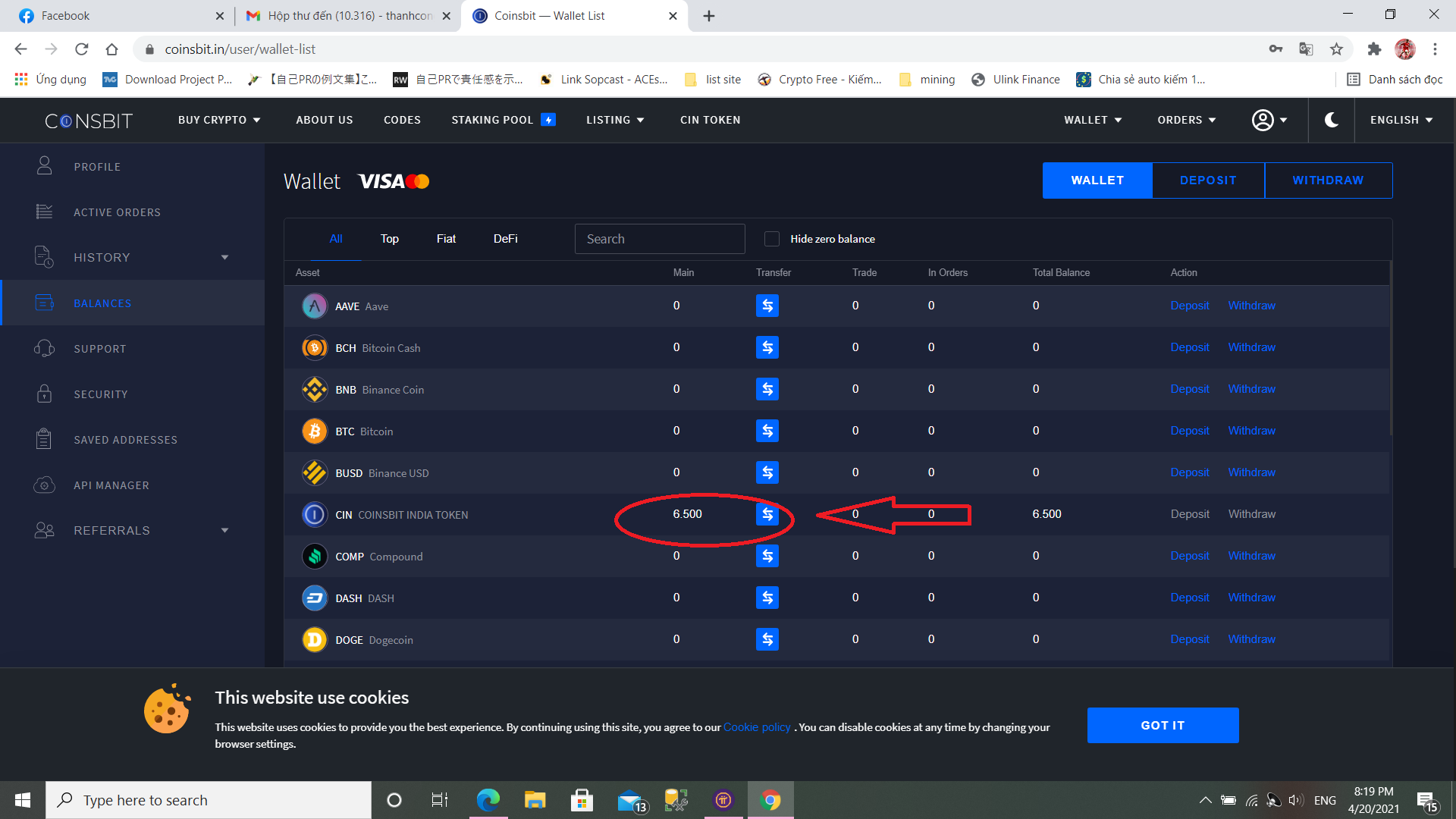 Đăng ký, KYC sàn Coinsbit tặng 2000 CIN(200$)