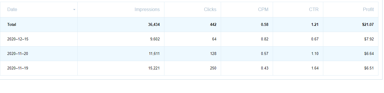 chạy vài hôm. mình chỉ để poup nhảy hạn chế. ko cho nhảy tràn lan như ngày đầu. 2 hôm đầu nhảy add trang. Mấy hôm sau mình cho khi xem 1 vài trang mới nhảy nên poup nhảy ra ít hơn. nhưng CPM vầy vẫn ăn đứt bọn adskeeper đối với Tranff từ VN 99% như mình.
