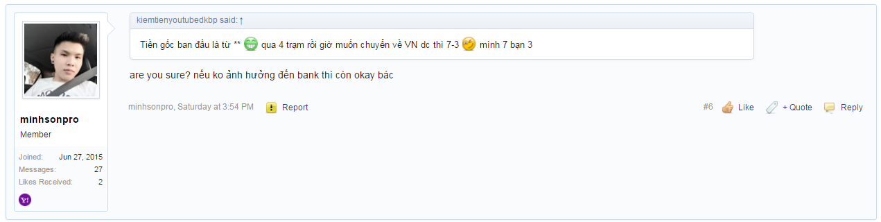 bạn nói lí do đi. còn ko làm ơn đừng spam. mình chuyển tiền sạch chứ ko phải rửa tiền nhé