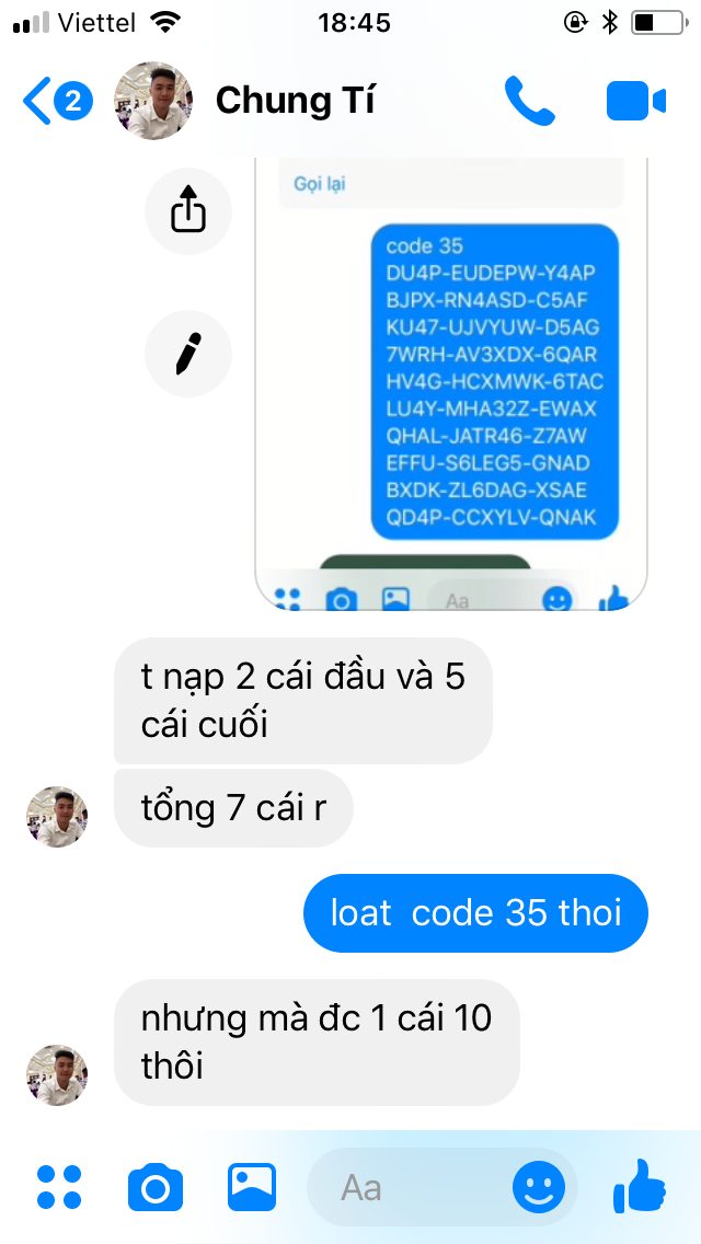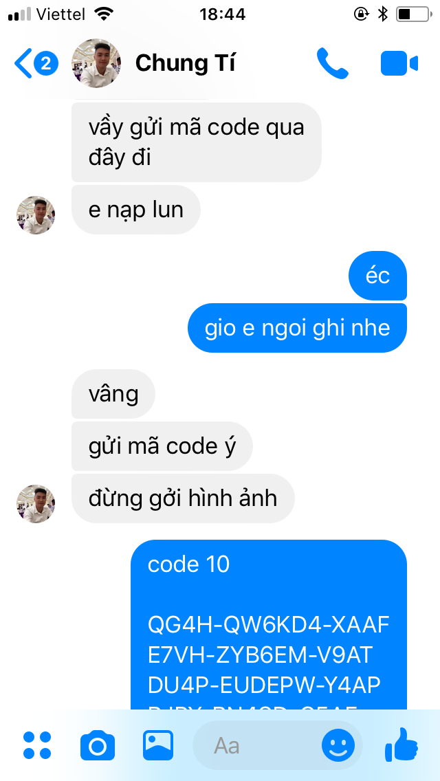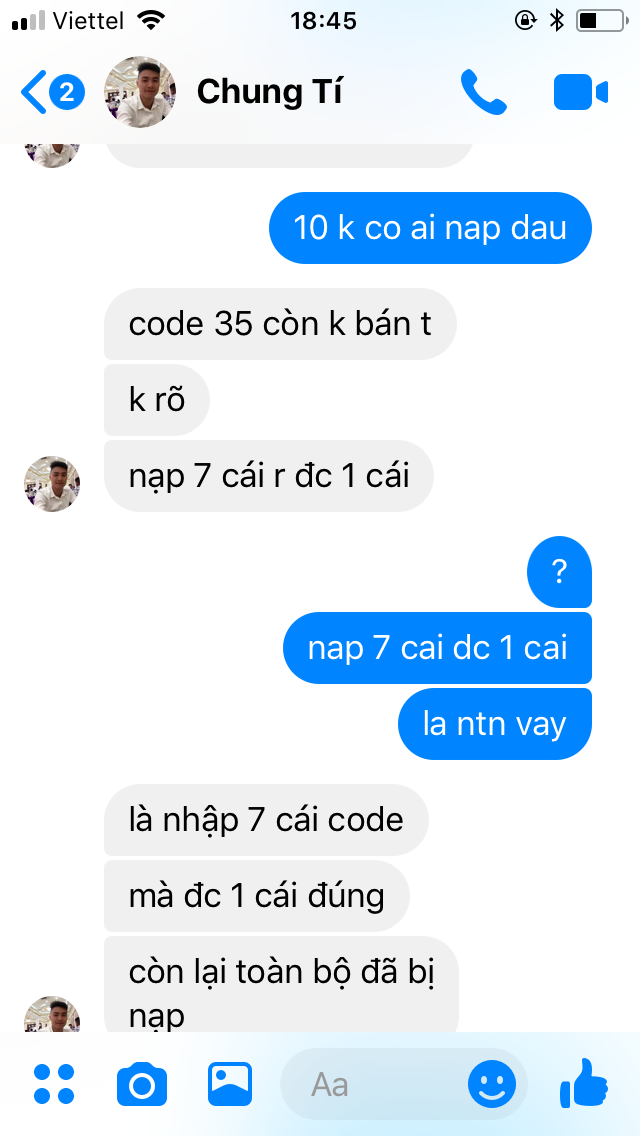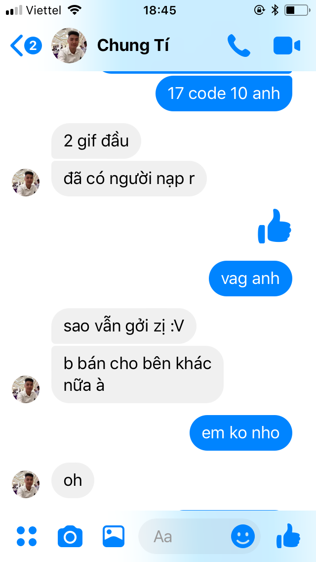 họ bảo éo tin =)) đòi tìm thêm ng nưa check =))Thấy bác nào ở trên show cả tin nhắn cả video chat với support rồi mà nhỷ