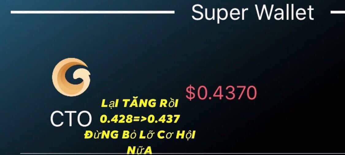 10-CTO có 8 vị lãnh đạo cổ đông lớn và là dự án đường dài có mục tiêu rõ ràng để giúp cộng đồng quốc tế có thêm một sản phẩm công nghệ thanh toán toàn cầu dùng Crypto curency và bổ sung vào thị trường crypto 1 đồng tiền CTO có giá trị cao và thực dụng,nên chúng ta hoàn toàn yên tâm phát triển và đồng hành cùng CTO!