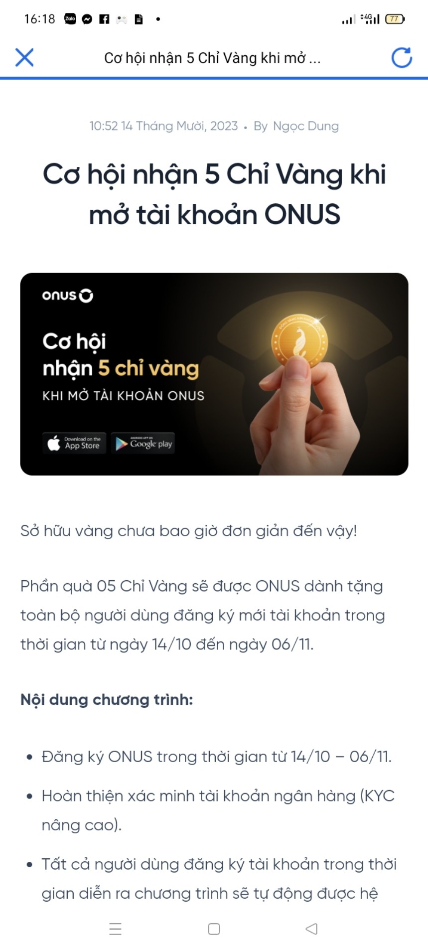 Đăng ký ngay ví ONUS từ ngày 14/10 đến 6/11, đăng ký tài khoản ngân hàng, KYC nâng cao sẽ được hệ thống ghi nhận và sẽ quay thưởng vào 19h/7/11/2023.