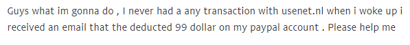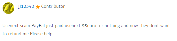 Sau đó em google thì có rất nhiều trường hợp trong paypal customer support báo là bị Usenext này scam dù đã gọi điện hay email báo hủy cho nó rồi, vẫn bị paypal charge khoản ~95 Euro vào ngày cuối cùng của hạn dùng thử, và hầu hết khiếu nại không được paypal refund@@. Trường hợp xài creditcard từ chối thanh toán (chargeback) thì nó gửi email hóa đơn, ra hạn rồi "chuyển khoản nợ cho công ty đòi nợ thuê" gì đó của Đức, bắt phải trả thêm phí đòi nợ thuê. Và email của công ty đó rất đáng sợ, chúng nói rằng chúng chưa bao giờ thua kiện, và con nợ sẽ phải trả toàn bộ chi phí kiện tụng hoặc tranh chấp nếu xảy ra tranh chấp. Và trên paypal support đó, có nhiều người đăng topic là họ đã trả gần 200 Euro (bao gồm cả phí đòi nợ thuê, phí phát sinh, phí phạt, vv...) vì bị đe dọa đến vô cùng sợ hãi.
