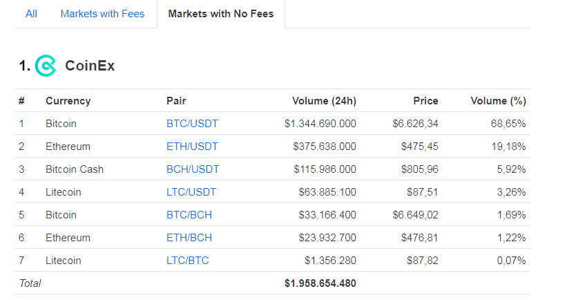 À phải chọn mục No fee. E để mục fee thấy nó top 2 mấyCập nhập mới nhất hôm nay đây. Cách đây hơn 1 tháng nó còn đứng thứ 40. Lúc đấy volume 1 ngày có 5,6 triệu USD, Giờ volume một ngày tổng là 5 tỷ USD tính cả các coin khác