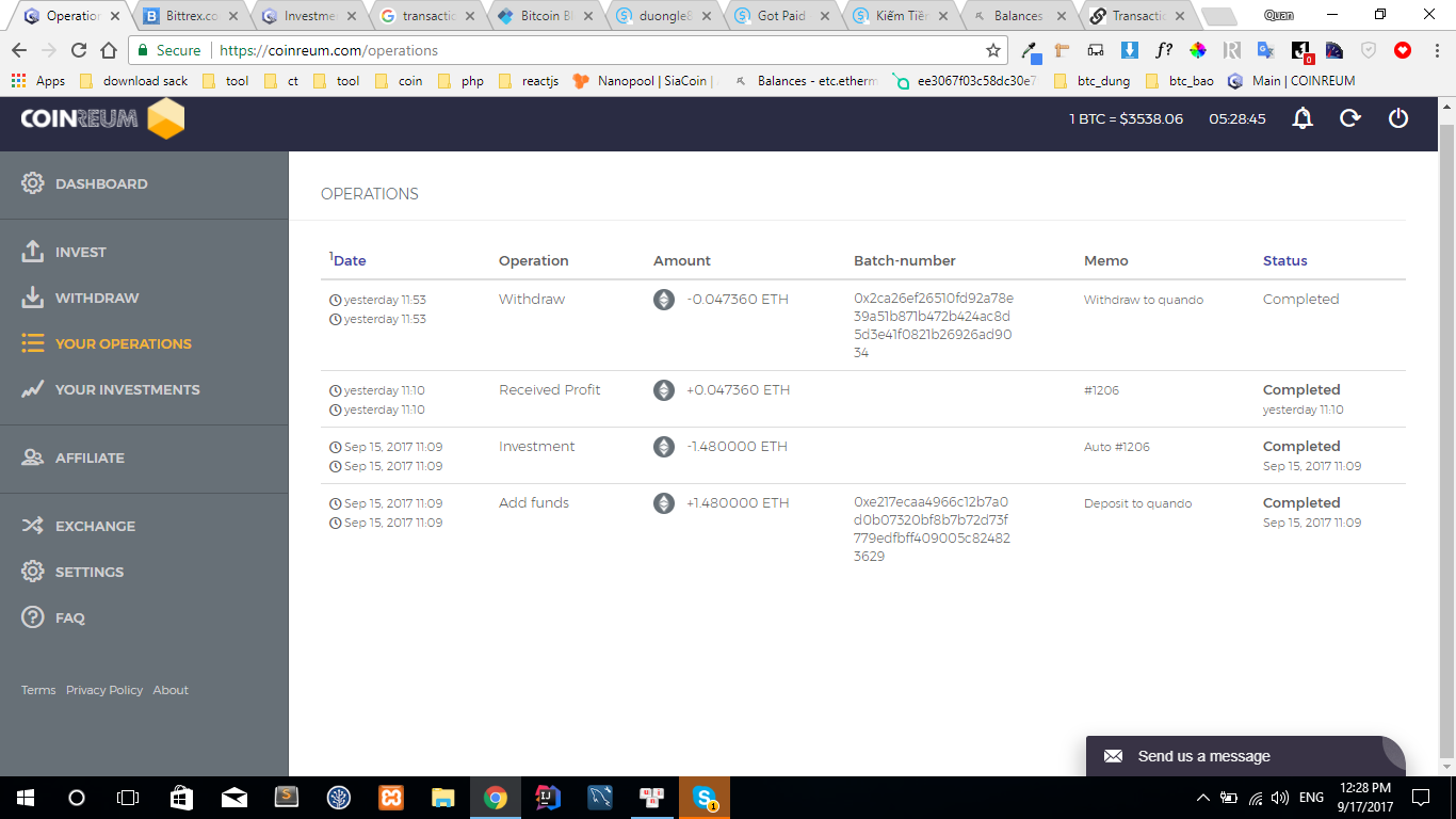 đã nhận mail withdraw tu coinreum nhưng kiem tra ví tren bittrex thì chưa thấy eth về.Đang hoang mang